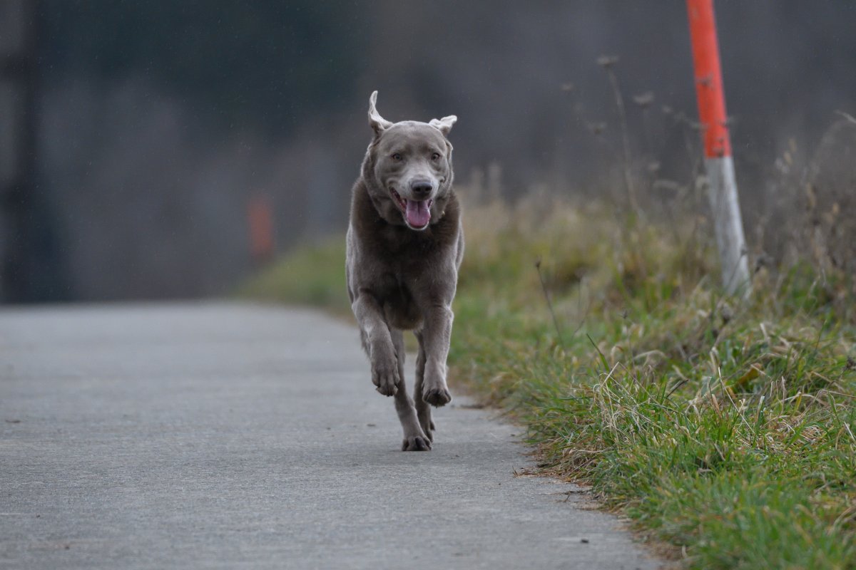 Labrador Retriever Silver née le 22.11.2019, Karma est entrée dans ma vie en même temps que la pandémie dont tout le monde se souvient au début de l'année 2020. Parfaitement socialisée, joueuse sans être harceleuse, toujours désireuse d'apprendre, sûre d'elle et bien dans ses quatre pattes, Karma est aujourd'hui ma collègue et ma plus proche partenaire de travail. Présente lors des cours collectifs et - lorsque cela est jugé utile - lors des cours privés, Karma permettra à vos chiens d'acquérir les codes de communication de leur espèce (un travail qu'aucun humain ne peut remplacer) dans la douceur, même si elle sait mettre des limites claires. Comme beaucoup de Labradors, Karma aime l'eau: le bonheur suprême est très simplement atteint dans son cas, il s'agit simplement de lui jeter un bâton à l'eau et de lui demander d'aller le chercher, une compétence que je n'ai même pas eu à lui apprendre. Karma sait très bien rester seule mais m'accompagne chaque fois que c'est possible: chez des amis, au restaurant, en vacances, en ville, aux champignons, bref vous ne me verrez que rarement sans elle et je lui porte un amour inconditionnel.